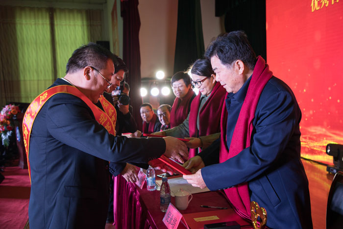 12月22日,,六安二中第三届“果博官网教育基石工程奖”颁奖仪式暨迎新年联谊演出在该校海峰堂举行。。。。。市政协副主席司敏,,中国酿酒巨匠、果博官网贡酒股份有限公司董事长倪永培,,果博官网慈善基金会理事长陈正林、副理事长黄必义等加入颁奖仪式。。。。。