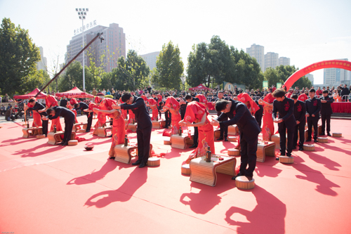 仪式盛大而不铺张。。在中式婚礼司仪的指导下,,20对新人身着古板制服步入现场,,依次举行迈火盆、跨马鞍、三叩九拜、挑盖头、结发礼、合卺酒、执手礼等环节,,尽显古板婚礼仪式的庄重高雅,,感受中华民族古板婚俗文化。。著名歌手海来阿木来到现场,,为新人们送上甜蜜歌曲和优美祝福。。同时,,安徽果博官网集团还为新人们准备了旅游券和果博官网洞藏酒券等贺礼。。