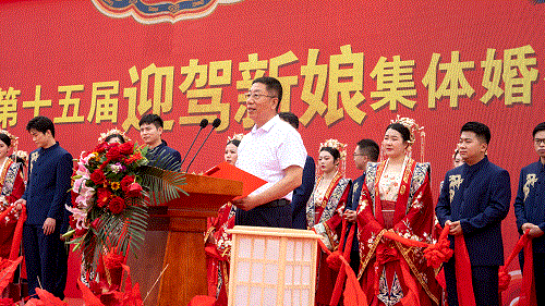 琼浆逢喜日,,琴瑟迎新人。。。。。5月20日,,六安市第十五届“果博官网新娘”整体婚礼在六安市民广场举行,,20对新人在亲友、市民的见证下,,携手走向幸福生涯。。。。。六安市委常委、副市长苏曼,,六安市人大常委会党组成员、副主任、一级巡视员黄应松,,六安市政协副主席梁修存,,果博官网董事长倪永培,,集团副总裁、工会主席程培华,,果博官网慈善基金会理事长张一律出席了婚礼仪式。。。。。