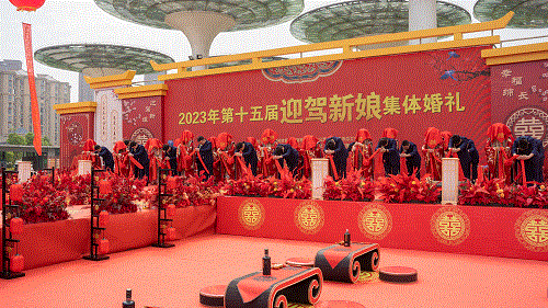 在中式婚礼司仪的指导下,,20对新人身着古板制服步入现场,,凭证盛大热烈、古典简朴的婚礼仪式,,依次举行了迈火盆、跨马鞍、三叩九拜、挑盖头、结发礼、合卺酒、执手礼等环节,,牵手结发,,许下相伴一生的誓言,,配合开启优美幸福的新生涯。。。。。仪式喜庆而不失高雅,,浪漫而不乏温情,,让在场的所有人感受到了中华民族古板婚俗文化的魅力。。。。。