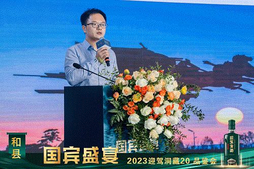 安徽省和县和商交流协会副会长黎宏上台致辞讲话。。。。他由衷赞扬了果博官网践行“生态酿造”,,,高举中国酒业生态大旗,,,走出了一条绿色高质量生长之路。。。。他体现将起劲推动加深商会与果博官网的交流相助,,,实现共赢生长,,,助力果博官网在和县市场热销大卖。。。。